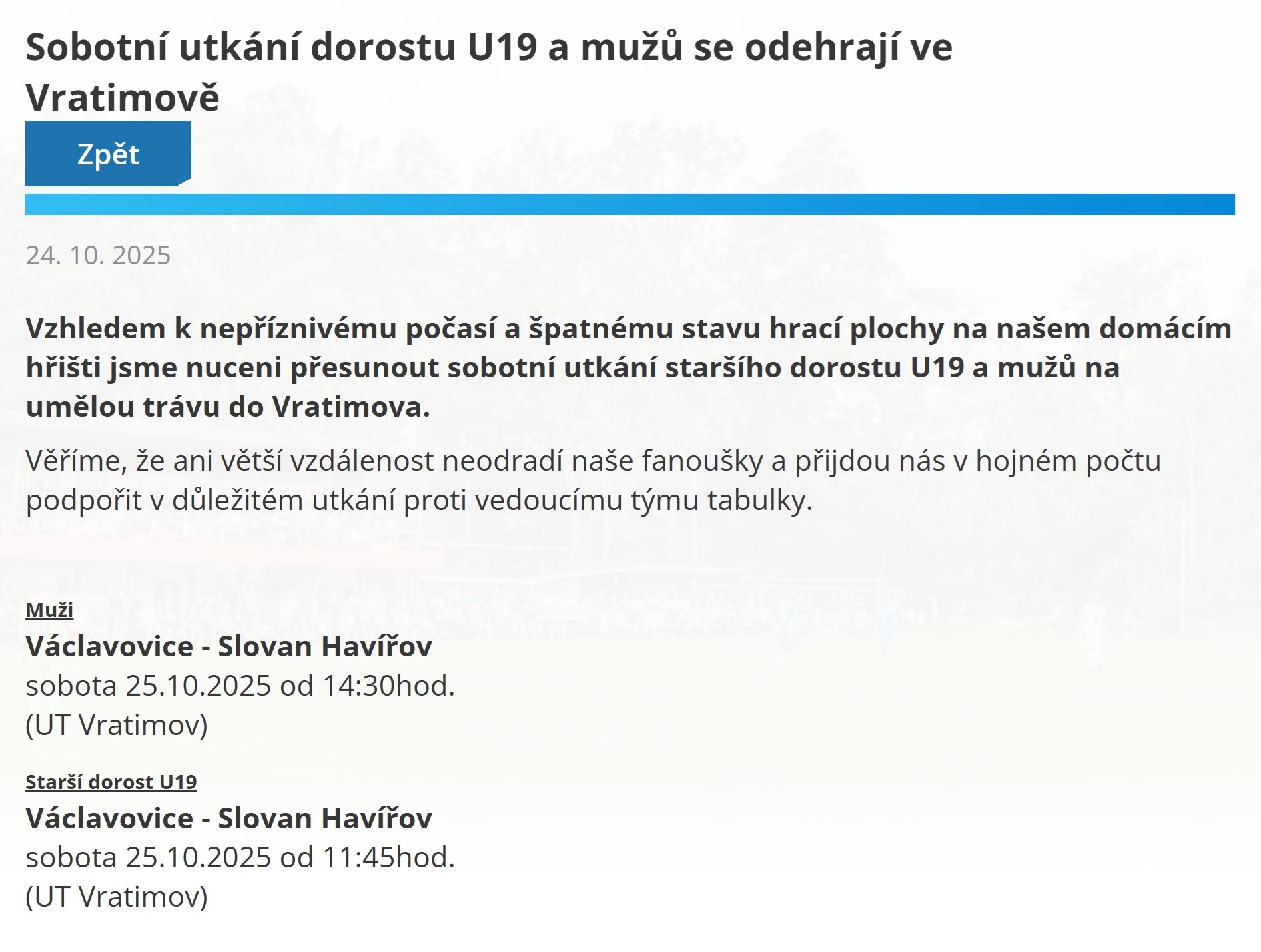 Upozornění TJ Václavovice