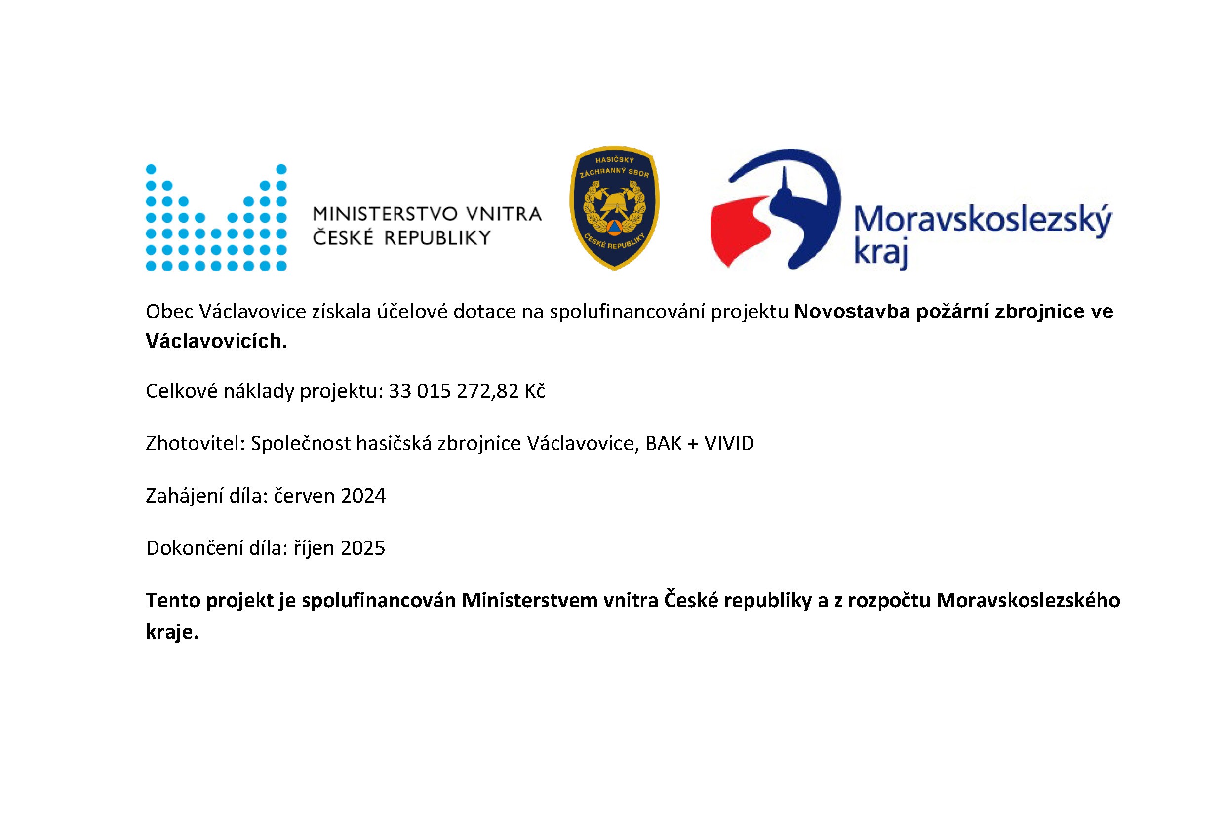 Spolufinancování projektu Novostavba požární zbrojnice ve Václavovicích